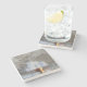 The coasters are gorgeous, a quality feel and heavy weight. They look like a precious archeological find. A rustic stone juxtaposed with a modern floral black and white print. I like the way the print goes slightly imperfect on the cut stone edges giving them a kind-of natural beauty.