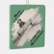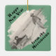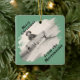 Share a special photos on this diagonally-oriented ornament. Openings that looks like a window with frost scraped off frame the photos. Templates are set up for the photos and for the text. Different photos can be used on each side. The text is also set up to be personalized. The text is a snow-capped font. The background on both sides is green. If you need help personalizing, please contact me.