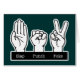 Rock, paper, scissors hands relabeled, "Slap. Punch, Poke." B/W graphic, on t-shirts, sweatshirts, cards, gifts.