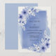 Delicate watercolor blooms in rich slate blue and soft white cascade across this design. A dreamy, ethereal aesthetic evokes a sense of gentle romance. Perfect for an elegant, airy occasion.