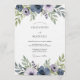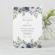 This design features a watercolor-inspired arrangement of deep slate blue blossoms and soft lavender blooms, accented by delicate greenery. The composition evokes a romantic and artistic mood, perfect for an elegant affair.