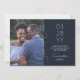 Slate blue wedding save the date card is versatile for bluish grey wedding colours. Elegant calligraphy script is beautiful overlaid with your photo. Easily modify the wedding information for your save the date card. Block text is perfect for a simple, minimalistic look.