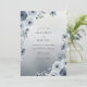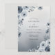 This design features a sophisticated palette of slate blue and icy white tones. Soft watercolor roses and delicate anemones create a romantic, ethereal aesthetic perfect for a cool-toned seasonal theme. A subtle smoky gradient adds depth to the botanical arrangement, highlighting the intricate detail of the petals and cool foliage.
