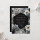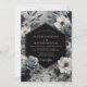 A striking monochromatic design featuring deep slate blue and charcoal tones. Lush, painterly floral illustrations create a dramatic and romantic atmosphere, reminiscent of a moody, classic aesthetic. The intricate botanical elements evoke a sense of refined elegance.