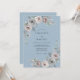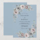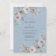 Delicate floral arrangements in muted rose and dusty blue hues adorn this serene design. The soft watercolor effect creates an ethereal and romantic mood, perfect for a tranquil celebration. The prominent colour palette evokes a sense of gentle elegance.
