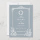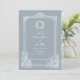 Set a refined and romantic tone for your special day with this elegant dusty blue vintage ornate frame wedding invitation, featuring a delicate white line-art botanical border, a sophisticated decorative frame, and a custom monogram at the centre. This timeless design blends classic wedding elegance with a touch of French country charm, making it the perfect introduction to your wedding celebration.
