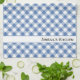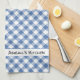 Ms. Monogram's traditional blue gingham pattern kitchen towel design features the well-known buffalo check pattern with a modern twist -- it's personalised with the recipients name. Kitchen towels make wonderful additions to house warming gift baskets. #BlueKitchen #SlateBlue #Monogram