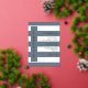 Chic typography wedding invitation in slate blue, white, and gold with stripes and a modern typography design. Modern typography wedding invitation with slate blue and white stripes, and gold foil text.
