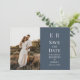 Slate Blue Monogram Custom Photo Save the Date Invitation