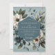 Evoke a sense of timeless romance with this elegant artistic design. A sophisticated color palette of dusty slate blue, muted sage green, and soft ivory sets a moody and refined tone. The arrangement features beautifully rendered white anemones and other lush botanicals, creating a vintage storybook feel for your special day.