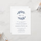 Slate Blue Olive Branch Monogram Wreath Wedding Invitation... Our double sided wedding invitation features a slate blue silhouette monogram wreath of olive branches on a crisp white background followed by invitation text in elegant serif and sans serif typography. Save paper by including your wedding website QR code on back of the invitation, allowing your guests to RSVP online and see all the details typically sent on separate cards in the wedding packet. The example wedding website QR code and invitation text can be easily revised with your own details using the personalisation template.
