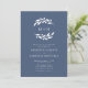 Slate Blue Olive Branch Monogram Wreath Wedding Invitation... Our double sided wedding invitation features a white silhouette monogram wreath of olive branches on a chic slate blue background followed by invitation text in elegant serif and sans serif typography. Save paper by including your wedding website QR code on back of the invitation, allowing your guests to RSVP online and see all the details typically sent on separate cards in the wedding packet. The example wedding website QR code and invitation text can be easily revised with your own details using the personalisation template.