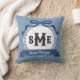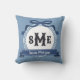 Slate Blue Reverse Greek Key Bow Monogram Cushion