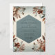 Embrace a romantic, rustic atmosphere with this elegant design. A beautiful arrangement of terracotta and rust-hued blooms cascades delicately across a soft ivory background. These warm, earthy botanicals are perfectly balanced with a deep slate blue hue, creating a stunning and artistic aesthetic for your special day.