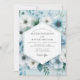 Embrace a timeless romance with this elegant artistic design. A beautiful arrangement of delicate white and dusty blue anemone blossoms is rendered in a soft watercolor style. Lush sage green foliage complements the cool blue tones, creating a serene and dreamy atmosphere for your special day.