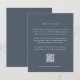 Add important information to your wedding suite with this modern winter enclosure card from Redwood & Vine Design Co. Set on a deep slate blue background with clean white text, this editable card is perfect for including travel, accommodation, or weekend itinerary details. The design also features a scannable QR code that links to your wedding website or registry, offering a stylish and functional way to guide guests through your big day. Ideal for mountain, lodge, or cold-weather celebrations.