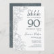 Slate Blue White Botanical Surprise 90th Birthday Invitation