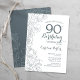 Slate Blue White Floral 90th Birthday Party Invitation. Minimalist modern design featuring botanical outline drawings accents and typography script font. Simple trendy invite card perfect for a stylish female bday celebration. Can be customized to any age. Printed Zazzle invitations or instant download digital printable template.