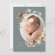 This elegant and modern classic stylish vertical photo birth template announcement is a 2-sided double sided card that features an oval shaped cutout photo of your newborn baby girl and lovely botanical greenery florals framing the baby's image. Personalise this photo card with your custom message from the family (mother, father, siblings if you wish) that can be personalised on the back side with any thank you message or phrase quote from the new parents. There is also a second horizontal photo featured on the backer side. This baby announcement card features a colour palette in vintage muted colourful red, green, yellow, blue, and pink tones.