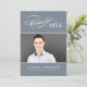 Celebrate your senior with this modern photo graduation party invitation featuring elegant script “Class of” typography and a bold 2026 headline in a slate grey colorway. Personalise the graduate name, school, and party details for a clean, polished look that keeps the photo front and centre. The coordinating back design uses a classic grey layout for easy-to-read event details and RSVP information. Perfect for high school or college graduation parties and open house style celebrations.