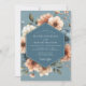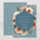 Embrace a romantic and artistic atmosphere with this elegant design. It features a stunning arrangement of painterly anemone blossoms in soft peach, cream, and dusty blue hues. These beautiful flowers are set against a muted slate background, accented with delicate greenery. The aesthetic is perfect for a sophisticated and modern matrimonial union.