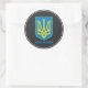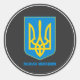 Ukrainian flag colours blue and yellow shield with SLAVA UKRAINI Glory to Ukraine logo. Support the Ukrainian people! Round sticker.