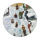 Artist: Earl Mayan | Children sled as fathers dig autos out of snow