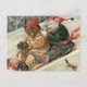 A terrific vintage winter illustration - two bears on a joy ride - tobogganing through the snow!