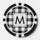 Sleek Black and White Buffalo Plaid with Monogram Poker Chips