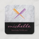 Sleek Black Crossed Comb and Marble Square Business Card