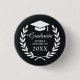 The classic black background provides a stylish backdrop for the graduation emblem, which includes a laurel wreath, graduation caps, and crisp white text. Personalise the button with your name and graduation year for a truly personal touch. All the elements are editable, including the graphics colours. Order yours today and make your achievement truly unforgettable.