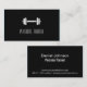 A modern, minimalist business card with the white vector outline of a dumbbell with rounded weights over a dark grainy texture sleek black background. Personalise easily with your contact details. Great for freelance personal trainers, fitness instructors and anyone in the fitness industry.