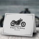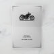 A birthday card with subtle gray accent lines framing and featuring a sleek black motorcycle silhouette rendered in a minimalist style with chrome accents. Perfect for a biker anniversary!