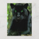 Sleek Black Panther Cat with Green Eyes Postcard