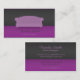 A modern, sleek, stylish and chic business card that is perfect for interior designers, home decorators or furniture businesses. Especially if the business specialises in modern, contemporary, glamourous decor styles. It features a purple sofa with a tufted design on the cushions with a light shadow gradient below the sofa. A black and purple background. Personalise easily with your business details.
