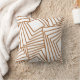 The sleek geometric pattern in white with copper accent can complement and elevate a room dominated by neutrals through the movement and overlapping layers of squares.