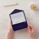 All-In-One Wedding Invitations with Sleek Modern Lines: Simplify your wedding invitation process with these all-in-one invitations. They feature clean layouts, serif fonts, and the sophistication of navy and grey, all in one convenient package.