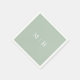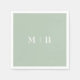 Sleek and Simple Sage Monogram White Cocktail Napkin. Wedding. Sage background. White text.