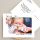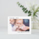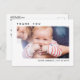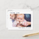 This sleek and simple modern custom photo baby shower thank you postcard is a lovely way to thank friends and family for the gifts and support received during your baby shower! The modern and trendy design features your baby´s photo in the centre and the text in simple modern typography. On the top there is a thank you header and on the bottom, your baby´s details. Your fully customisable thank-you message is on the back, in a black casual font on a white background. Click on the personalisation button to change the card with your information.