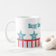 Vibrant and fun Sleek Stars and Stripes Mug featuring chic stripes and a row of five funky and cool stars. This stylish mug lets you show your patriotic side while enjoying your favourite beverage! Customise with your own text to give this design a personal touch! This design is also appropriate for Memorial Day!