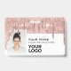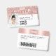 Easily personalise this Custom TRendy Sleek Glam Employee Name Badge with Photo, Scan Bar Code and business logo, with metal clip included. A trendy girly design left-aligned in cute shimmer rose gold glossy faux foil and luxury glitter drips fully customisable in front and back sizes, sans-serif basic and modern fonts and a professional and clear look. Avaiable with or without lanyard, metal clip or with retractable. No minimum order.