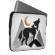 Sleek wolf silhouette howling crescent moon laptop sleeve
