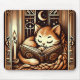 Sleeping Art Deco Style Cat With A Book Mouse Pad