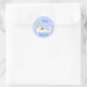 Sweet baby shower invitation / announcement envelope seal. A pretty blue patterned background, with graphics of a sleeping baby, on a cloud, with crescent moon. Blue text reads Baby Shower, and you can personalise it to read anything you want. Great finishing touch to a baby boy's shower invitation.