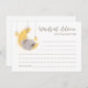 Customise this Lovely Teddy Bear Baby Shower Words of Advice Mummy Card, designed with original hand drawn illustration of a cute brown baby teddy bear sleeping comfortably in a bed on a kind moon covered with a soft grey blanket while the moon and the two stars are watching over the baby. Perfect for a neutral baby shower.