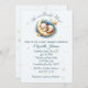 Sleeping bear on crescent moon with stars baby shower invitation.