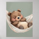 Snug as can be. This peaceful poster features an adorable sleeping bear curled up in a hammock, surrounded by soft sage tones and sweet, gentle shading. Perfect for nurseries, kids’ rooms, or anywhere that needs a little calm.