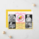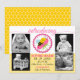 © 2012 Socialite Designs. Baby girl birth announcement with a whimsical sleeping bee in a flower surrounded with a lace circle.design. A subtle honeycomb pattern on the front and vibrant yellow on the back. A beautiful way to announce the birth of a newborn baby girl to your family and friends. Also makes a wonderful keepsake. Just change out the template photos and text with your own.