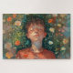 This jigsaw puzzle features a young boy sleeping surrounded by flowers. It would make a beautiful gift for a jigsaw enthusiast.
