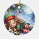 Sleeping Christmas Elf with Calico Kitten Ceramic Ornament